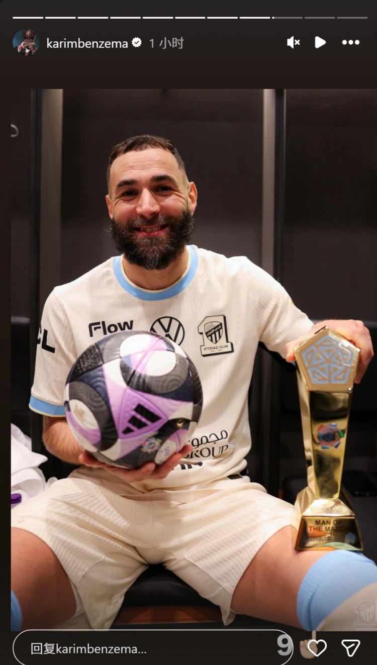 体育博彩-依旧犀利!38岁本泽马社媒晒比赛用球+全场最佳奖杯 xiaoqiao 2026年01月23日 22:00 68 0 1月10日讯 本轮沙特联赛,本泽马打进3球,帮助吉达联合客场4-0击败拉斯永恒。本泽马赛后更新社媒动态,晒出与比赛用球、全场最佳球员奖杯的合照,庆祝戴帽。本泽马在沙特联赛已经4次戴帽,创造吉达联合队史纪录。